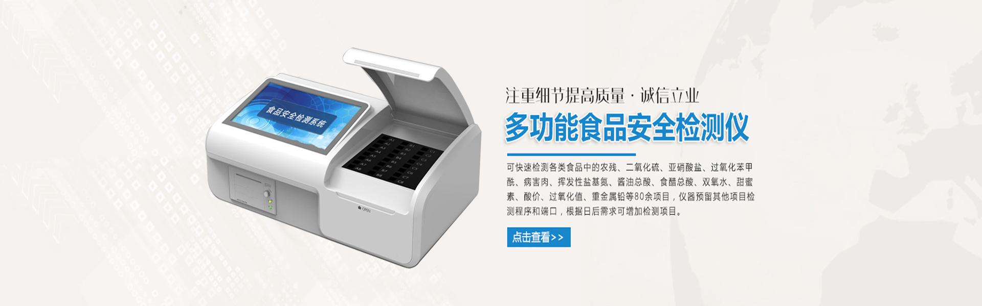 山東九如儀器有限公司(15864332657)是一家專注于研發,生產:獸藥殘留/食品安全/微生物致病菌檢測箱;農藥殘留檢測儀,食品安全快檢箱;水質速測箱,多參數水質分析儀等檢測設備的高科技企業!